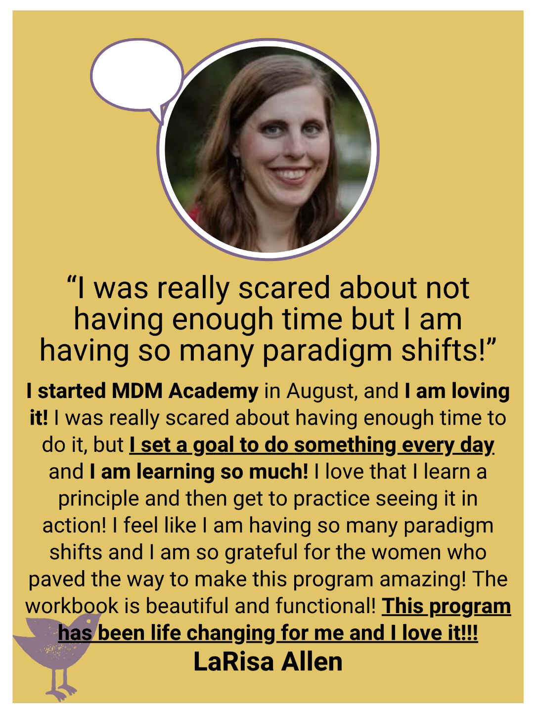 This online academy, built especially for moms and women, walks you step-by-step through the 7 Laws of Life Mission, with rich content and mentoring.